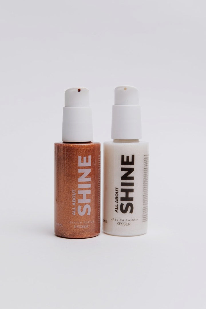 O All About Shine é um Sérum Iluminador que trata e hidrata a sua pele, ao mesmo tempo que ilumina e atua como desodorante corporal.